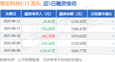 恒生科技ETF龙头:6月12日融资买入3336.47万元,融资融券余额5156.56万元